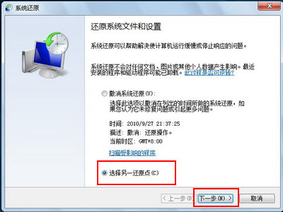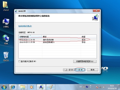 3、选择一个还原点,点击“下一步”。如下图: