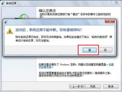 4、在“确认您的还原点”中,点击“完成”。如下图: