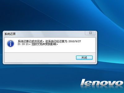 7、直至出现“系统还原已成功完成”,点击“关闭”即完成此操作。如下图: