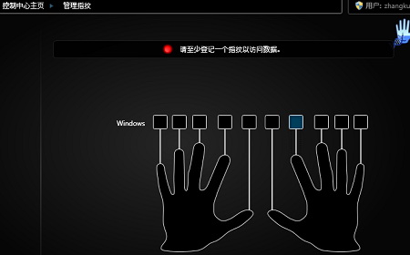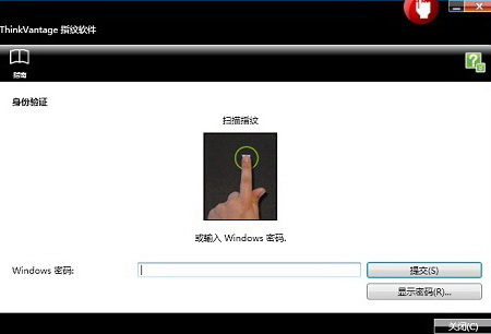 1、请扫描您登记的手指或输入Windows密码进入控制中心
