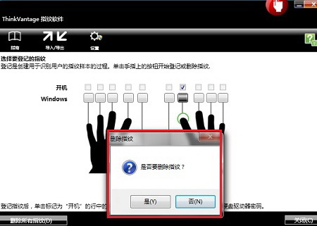 3、系统提示是否要删除指纹,此处选择“是”确认即可删除已记录的指纹信息