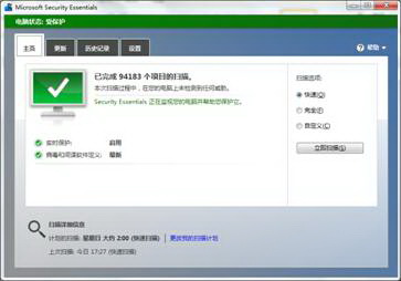 清除电脑系统中的病毒需要您的电脑中安装有杀毒软件,下面用微软官方杀毒软件MSE为您讲解