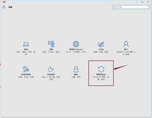 3、点击“更新和安全”,选择“恢复”---“回退到Windows 7或回退到Windows 8.1”;
